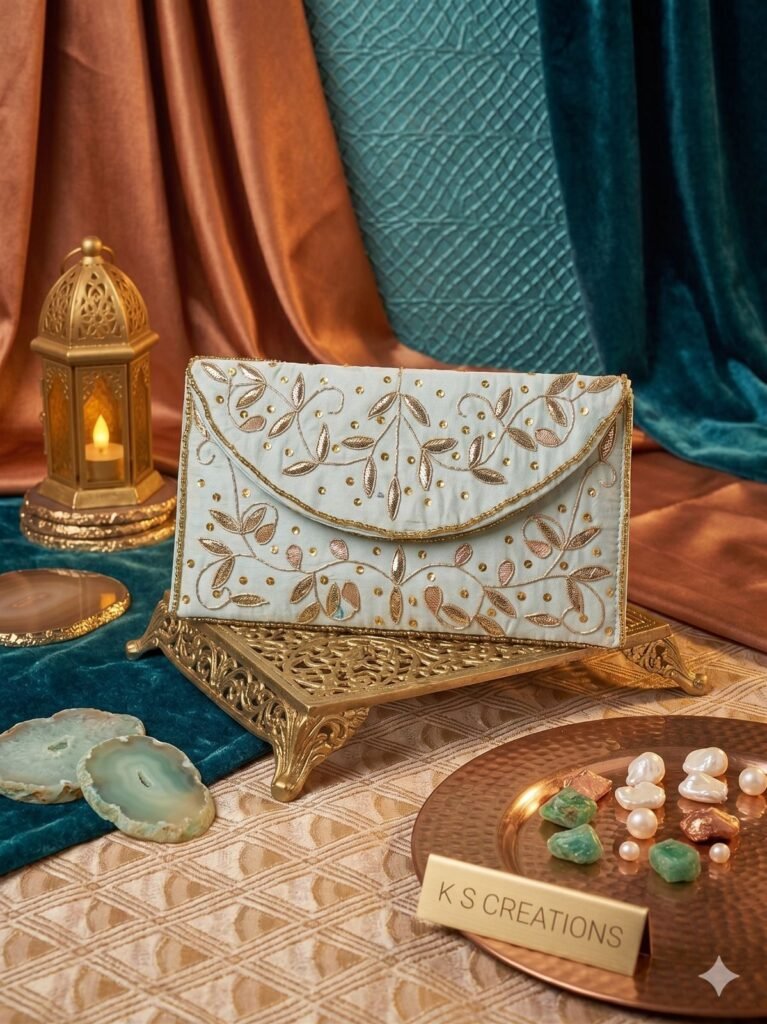 Elegant Handcrafted Ivory Money Gift Envelope with Gold Embroidery