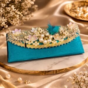 Add a touch of richness and tradition to your gifting with this beautifully handcrafted money greeting envelope in a vibrant green shade. Designed with intricate gold thread embroidery in a graceful floral vine pattern, this envelope exudes timeless elegance. Delicate bead accents are thoughtfully placed to enhance its luxurious appeal without overpowering the design.