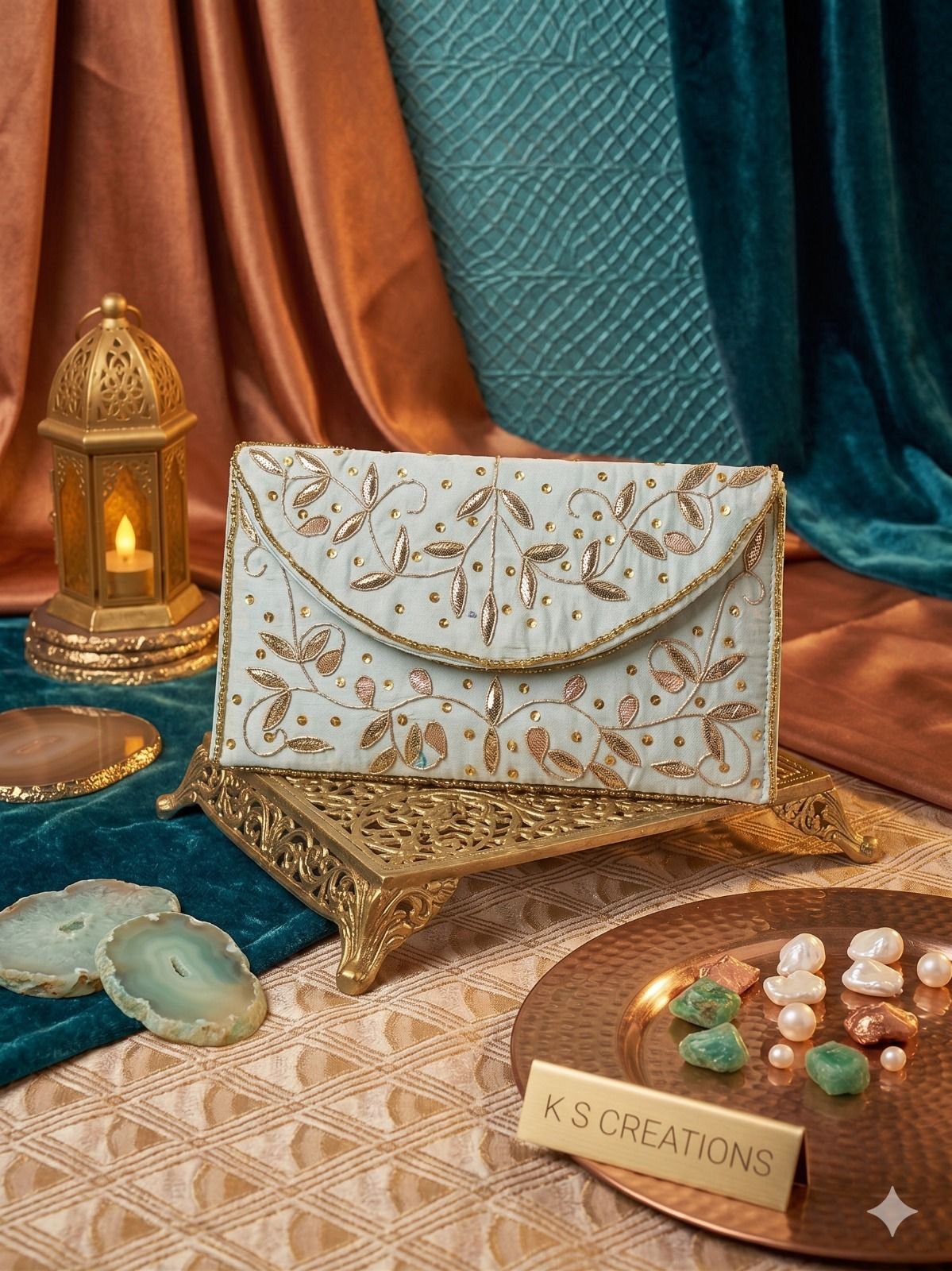 Be the first to review “Elegant Handcrafted Ivory Money Gift Envelope with Gold Embroidery”