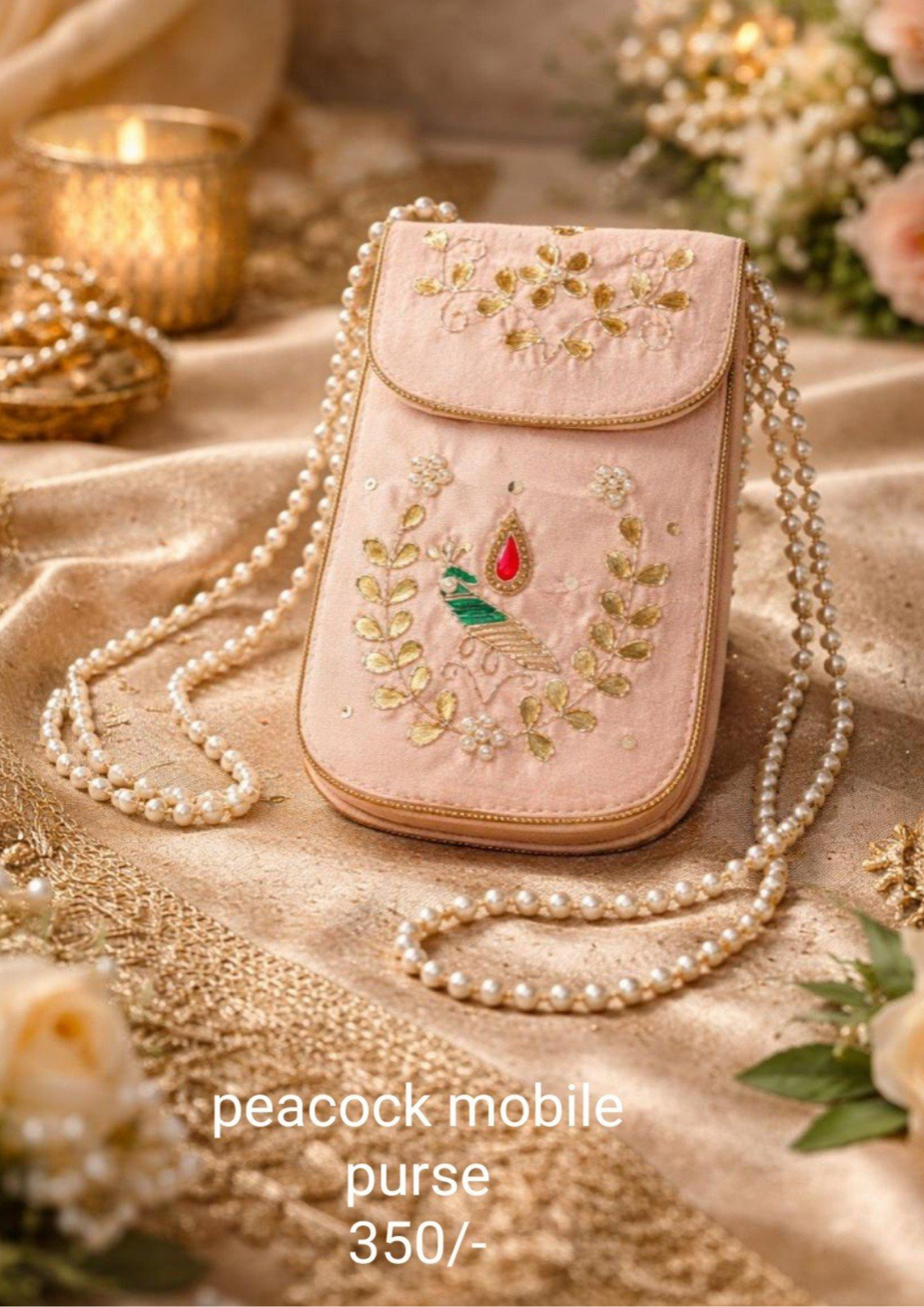 Elegant Peacock Embroidered Mobile Purse