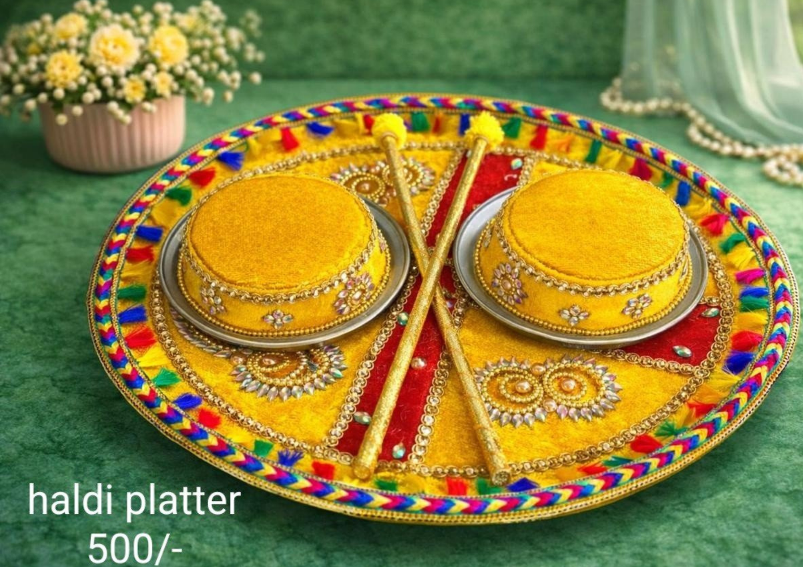 Make your Haldi ceremony extra special with this beautifully crafted Haldi Platter by KS Creations 💛 Designed with vibrant yellow tones and elegant floral detailing, this thali perfectly captures the essence of traditional Indian weddings.
