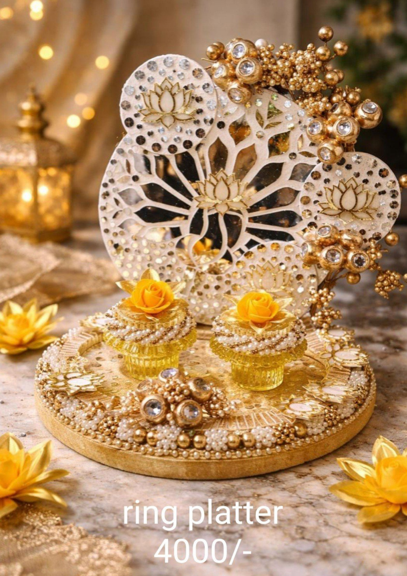 Majestic Golden Lotus Engagement Ring Platter